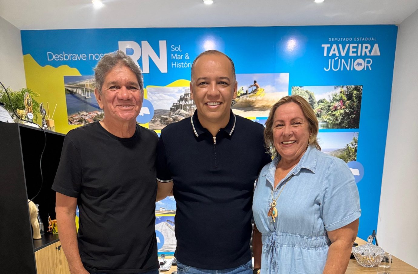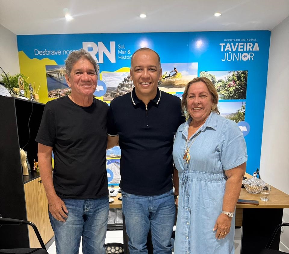 O deputado estadual Taveira Júnior recebeu, nesta semana, em seu gabinete de apoio parlamentar em Parnamirim, o ex-prefeito Zé de Macau, médico que comandou o município por três mandatos. O encontro também contou com a presença de sua esposa, Terezinha Menezes, e foi marcado por um clima de cordialidade e diálogo.
